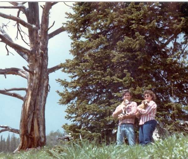 Joann with Pistol and Robert with Ginger at Yellowstone.
